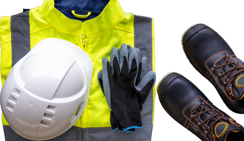 Stay protected on-site with certified gloves, helmets, boots, and high-visibility workwear